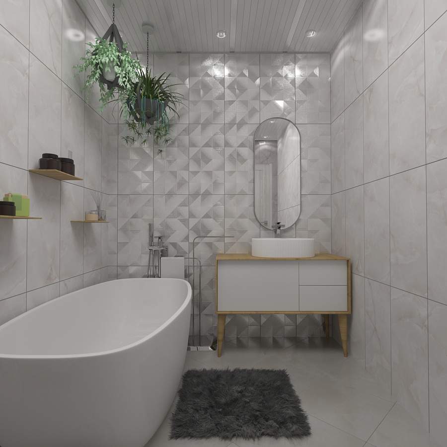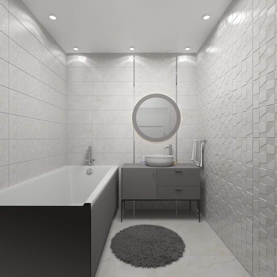 Тип поверхности плитки даст возможность применять его в различных помещениях, а цветовая гамма (белый) поможет воплотить