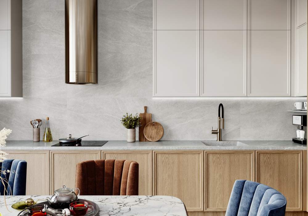 Тип поверхности плитки даст возможность применять его в различных помещениях, а цветовая гамма (бежевый, белый, зеленый, серый) поможет воплотить